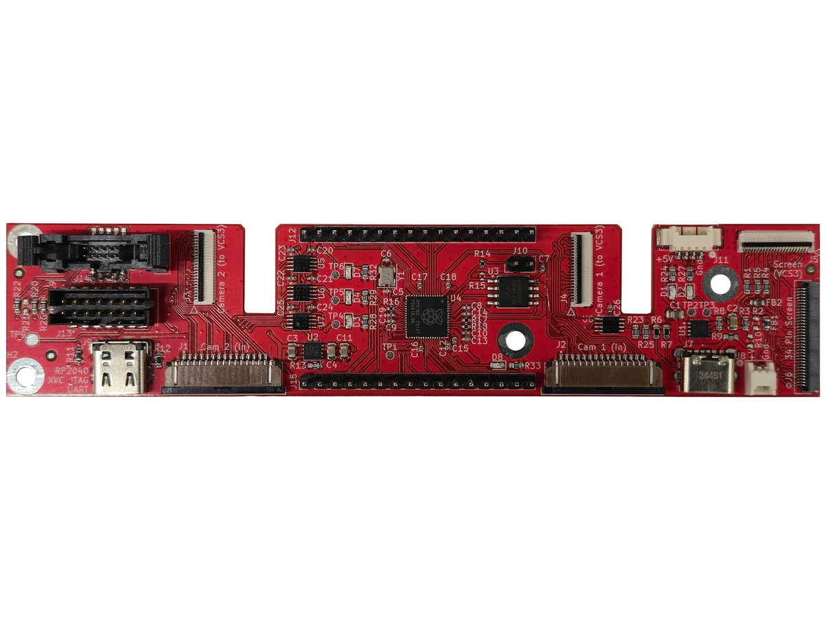 The VCS³-RP2040 has conversion between the standard 15-pin MIPI connector from the Raspberry Pi V2 cameras to the 22-pin MIPI connector used by the VCS³. It also converts the 22-pin MIPI on from the VCS³ to the 34-pin connector used by the 10.1” screen in the VCS³ 3D Kit. Extra power is supplied to power the backlight to assist the VCS³.